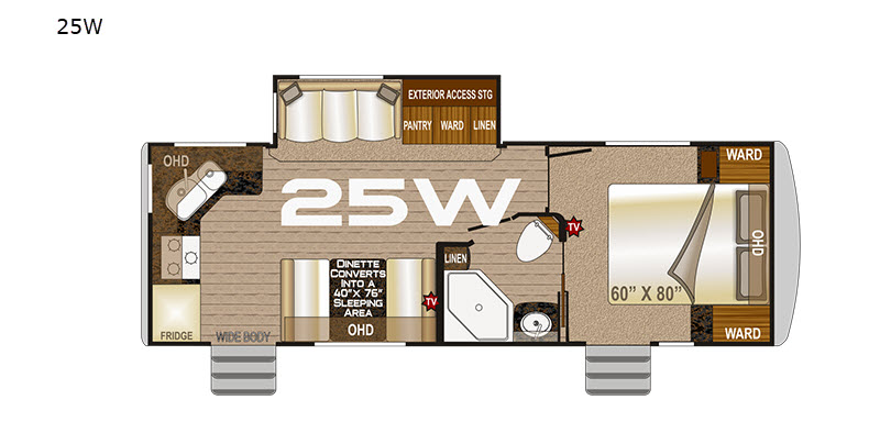 - 28″ 12v LED TV & AM/FM/CD/DVD Player w/Bluetooth (19" on 25R; 32" on 25Y, 28F; 40" on 32A)