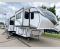 You and your spouse will love having this fifth wheel on your next camping adventure! Get a good night's rest each night on the queen bed slide in the rear private bedroom with TV prep across from the bed, and freshen up each morning in the full bathroom with the 30" x 48" fiberglass shower. You can enjoy home cooked meals made using the three burner cooktop and 16 cu. ft. refrigerator in the full kitchen, and eat them at the slide out free standing dinette table featuring two chairs and an ottoman with storage. You even have a hutch to store your dishes in, and a TV prep area so you can add a TV to watch a show while you cook. The front living area offers a comfortable place to wind down your nights by relaxing in front of the fireplace on either one of the opposing tri-fold sofa slides or the theater seating!