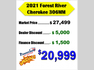 Pleasureland RV is not responsible for any misprints, typos, or errors found in our website pages. Any price listed excludes sales tax, registration tags, and delivery fees. Manufacturer pictures, specifications, and features may be used in place of actual units on our lot. Please contact us @800-862-8603 for availability as our inventory changes rapidly. All calculated payments are an estimate only and do not constitute a commitment that financing or a specific interest rate or term is available.
