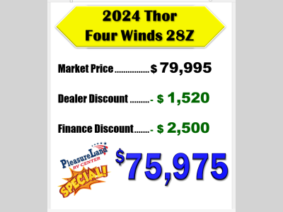 Pleasureland RV is not responsible for any misprints, typos, or errors found in our website pages. Any price listed excludes sales tax, registration tags, and delivery fees. Manufacturer pictures, specifications, and features may be used in place of actual units on our lot. Please contact us @800-862-8603 for availability as our inventory changes rapidly. All calculated payments are an estimate only and do not constitute a commitment that financing or a specific interest rate or term is available.