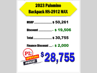 Pleasureland RV is not responsible for any misprints, typos, or errors found in our website pages. Any price listed excludes sales tax, registration tags, and delivery fees. Manufacturer pictures, specifications, and features may be used in place of actual units on our lot. Please contact us @800-862-8603 for availability as our inventory changes rapidly. All calculated payments are an estimate only and do not constitute a commitment that financing or a specific interest rate or term is available.