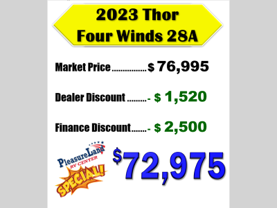 Pleasureland RV is not responsible for any misprints, typos, or errors found in our website pages. Any price listed excludes sales tax, registration tags, and delivery fees. Manufacturer pictures, specifications, and features may be used in place of actual units on our lot. Please contact us @800-862-8603 for availability as our inventory changes rapidly. All calculated payments are an estimate only and do not constitute a commitment that financing or a specific interest rate or term is available.